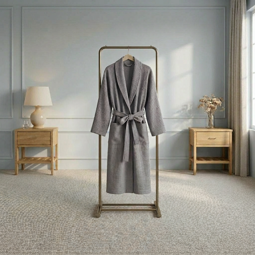 Σχεδιασμένη με άνετη εφαρμογή και μινιμαλιστική αισθητική, αυτή η ρόμπα προσδίδει αβίαστη πολυτέλεια και φυσική απαλότητα στη σύγχρονη ζωή.